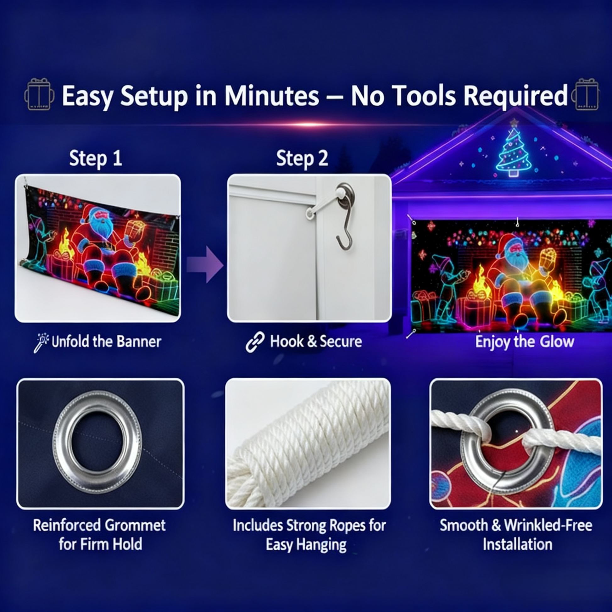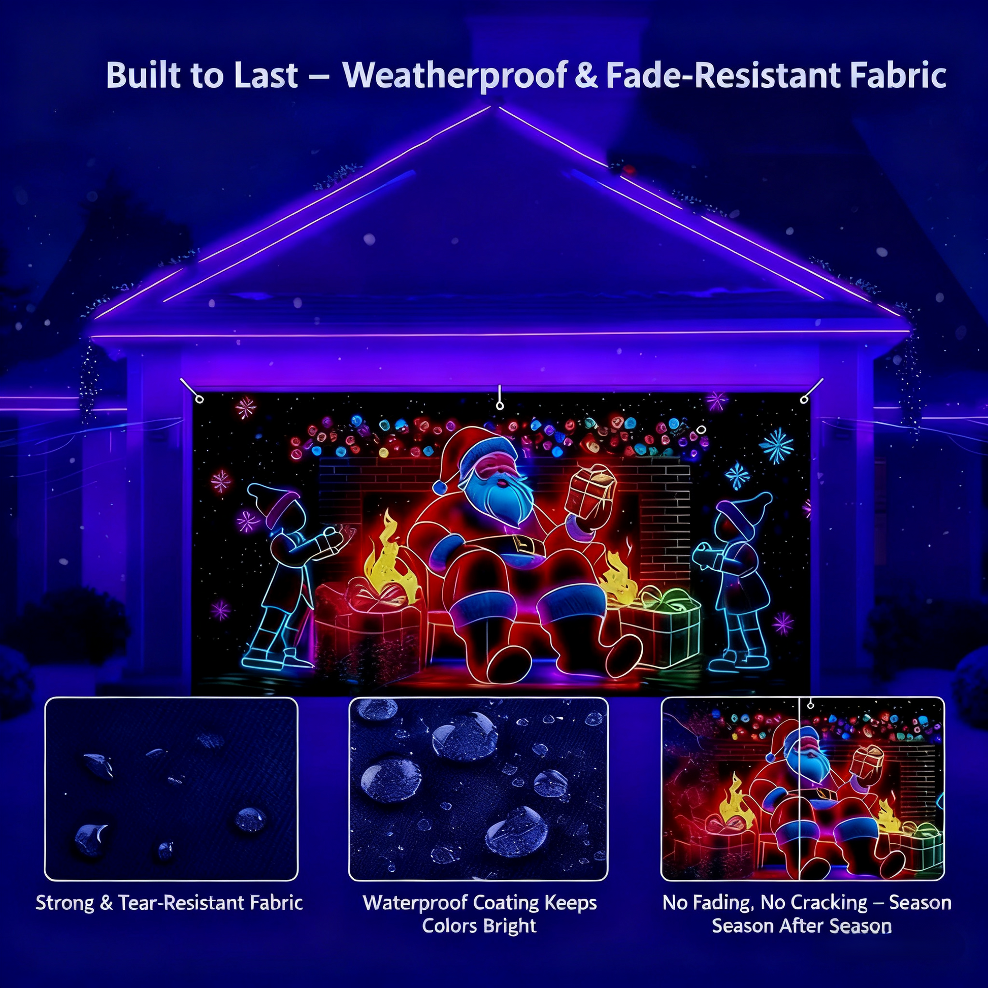 🎇🚪Christmas Magic for Your Garage! UV Banner with Glow Effect & All-Weather Material