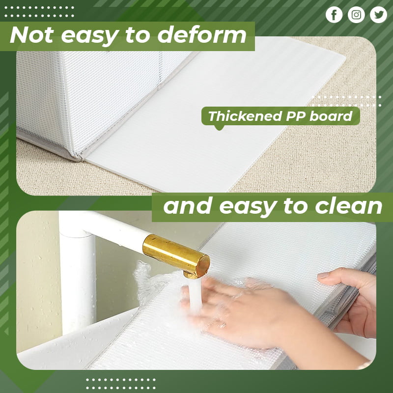 The new storage box has an Oxford cloth fabric, which is not easy to tear and has a built-in PP board, which makes the whole storage box supportive. Multiple storage boxes can be stacked for use, and can also be folded to save space when not in use.