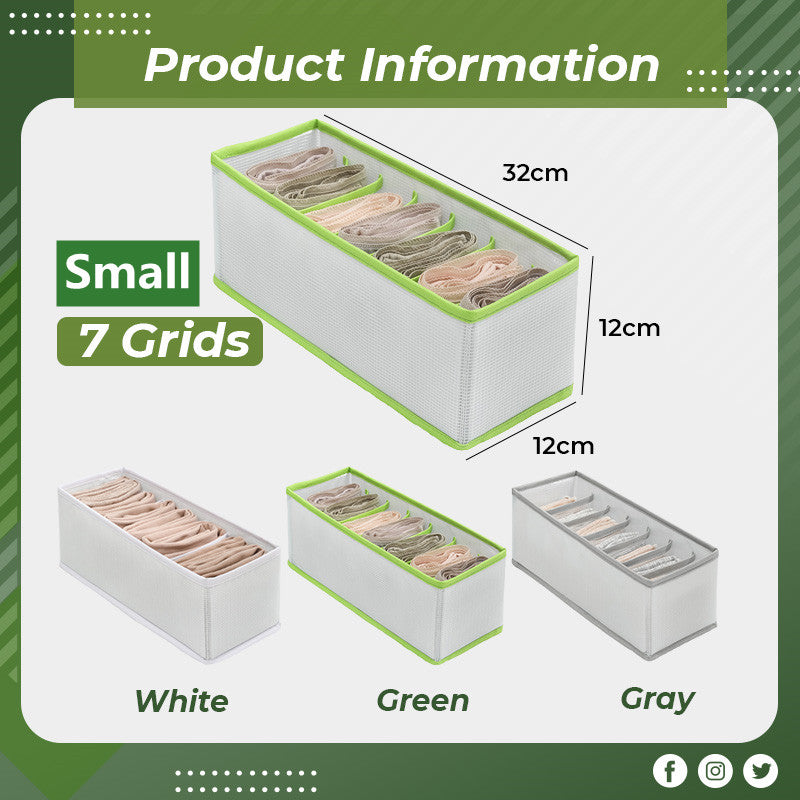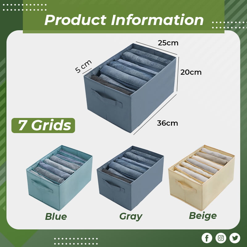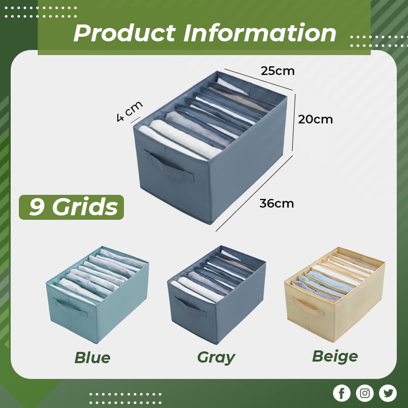 6 Grids: sweaters, coats, thick pants; 7 Grids: jeans, leggings; 9 Grids: T-shirts, shirts, bottoming shirts; Small 7 Grids: Underwear, panties, socks, scarves, etc. There are multiple compartments for sorting and organizing your belongings and keeping your living space organized.