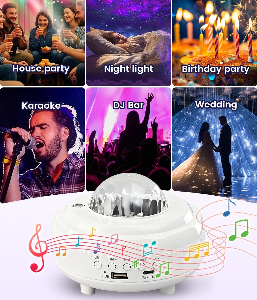 The aurora projector has a built-in music speaker and sound sensor andsupports Bluetooth control.