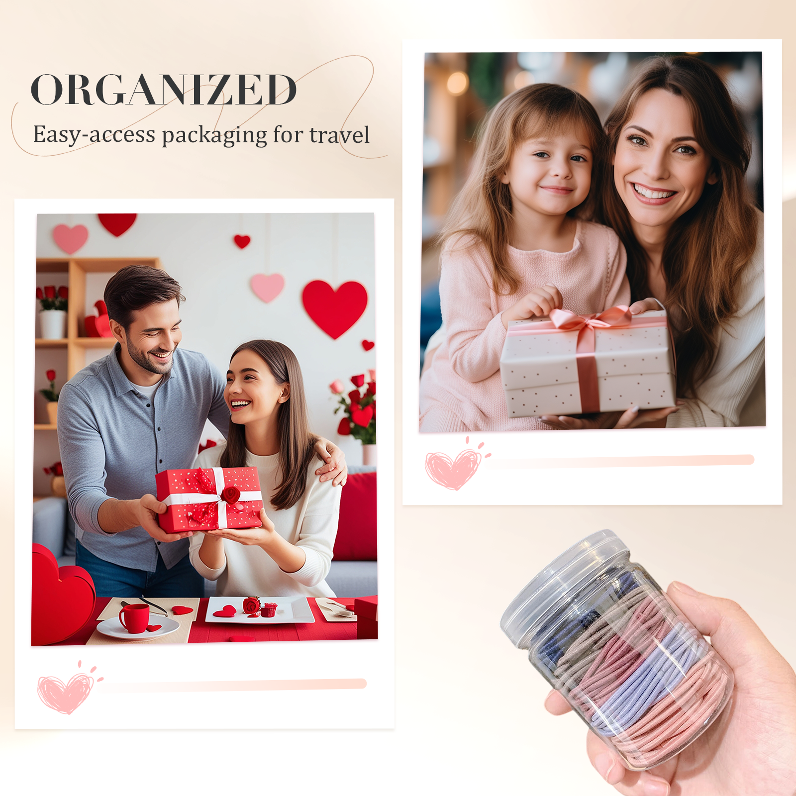 CONVENIENT STORAGE AND EASY ACCESS– The compact jar makes storage and access simple. No more tangled messes—just grab a hair tie when needed. The jar keeps everything neat, organized, and ready for quick use on the go.