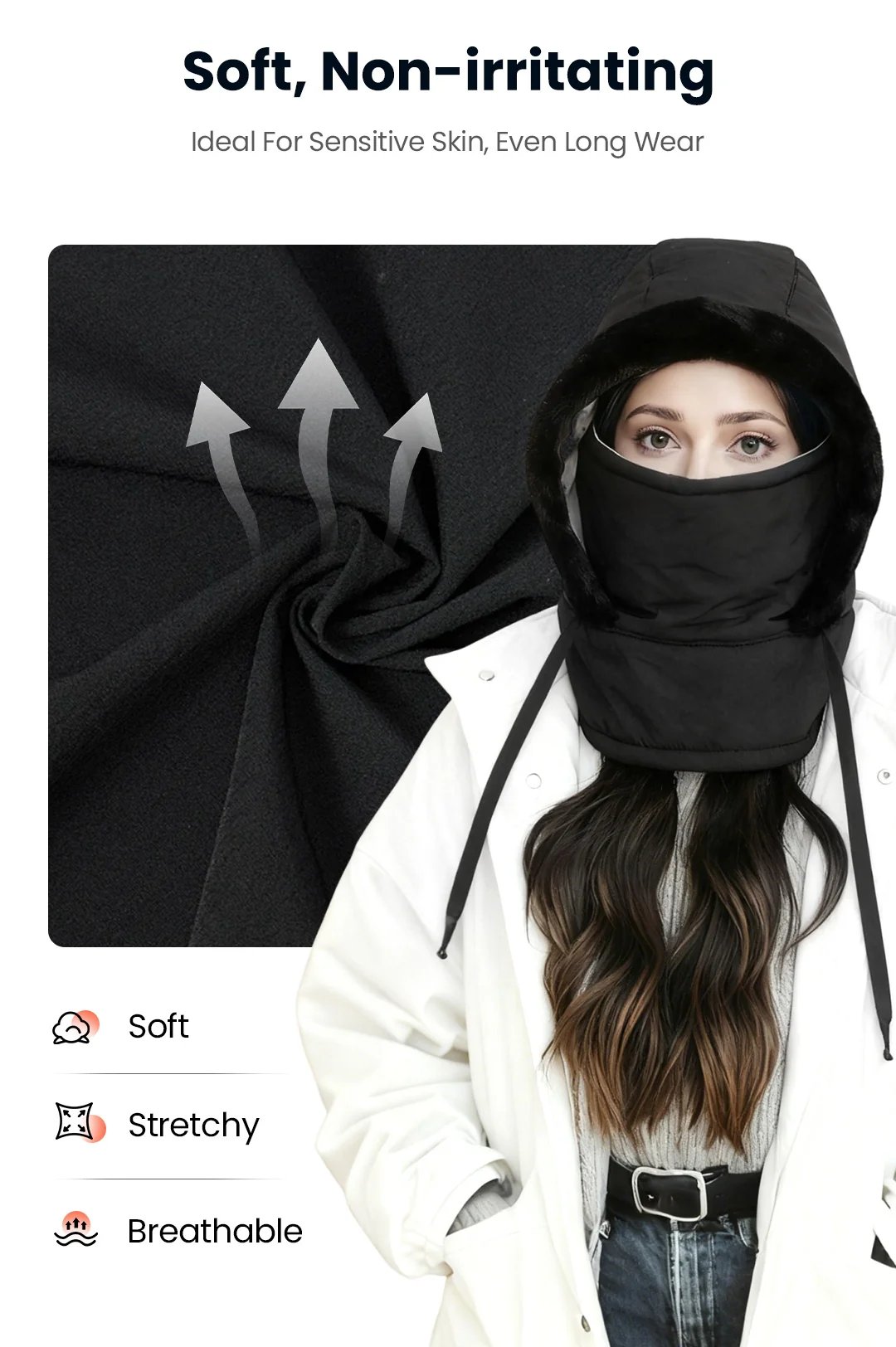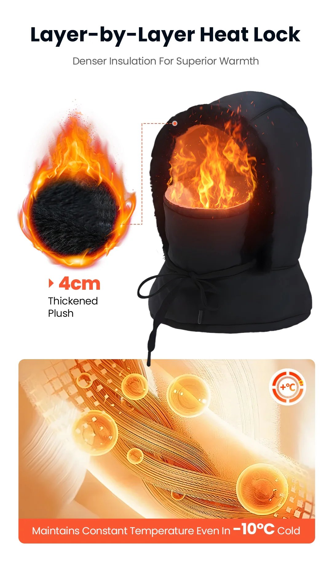 ULTIMATE WARMTH AND COMFORT: This hat features a plush lining that provides superior insulation, keeping your head, face, ear, and neck warm even in the coldest conditions. The windproof and water-resistant fabric effectively shields you from harsh elements, keeping you dry and protected in wet or windy conditions.