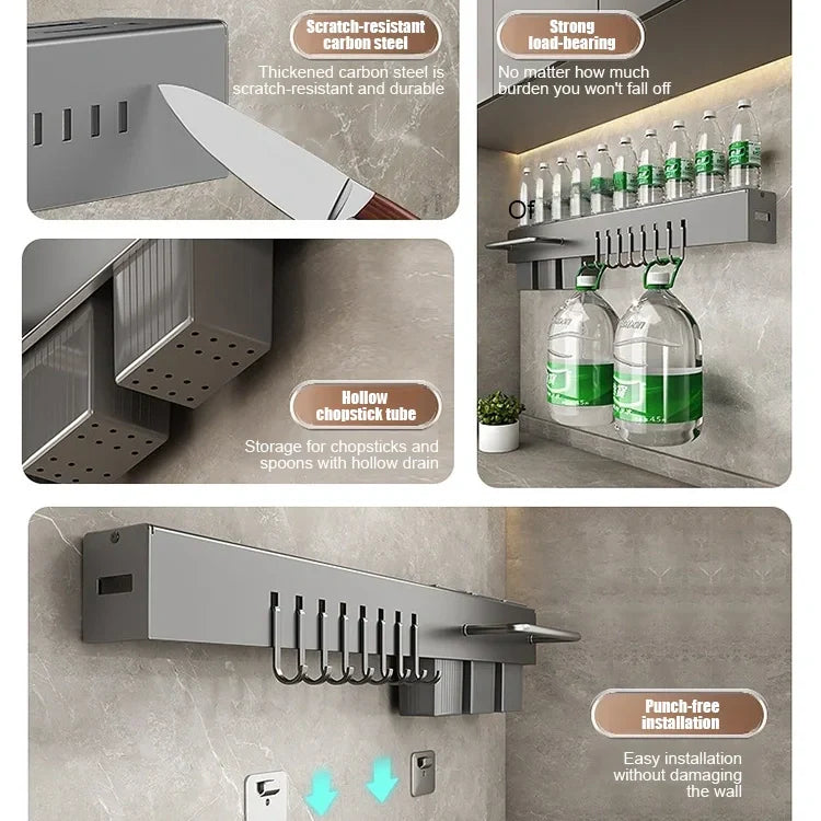 HIGH-QUALITY CARBON STEEL - Constructed from premium carbon steel, this holder is built to last. Its sturdy construction and robust build provide superior load-bearing capacity, ensuring it can support even the heaviest of kitchen knives without buckling or bending.