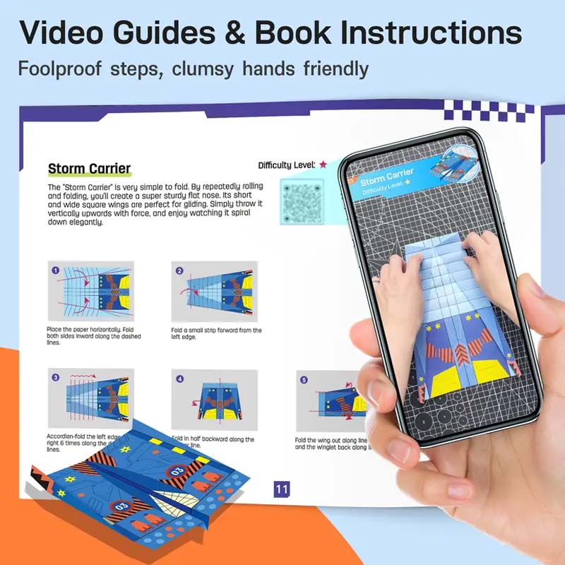 EASY-PEASY FOLDING FOR EVERYONE- No origami experience? No problem! Our pre-scored fold lines act like training wheels for paper planes, guiding little hands to perfect creases every time. Everyone can join the fun, from beginners to pros, building confidence with every fold.