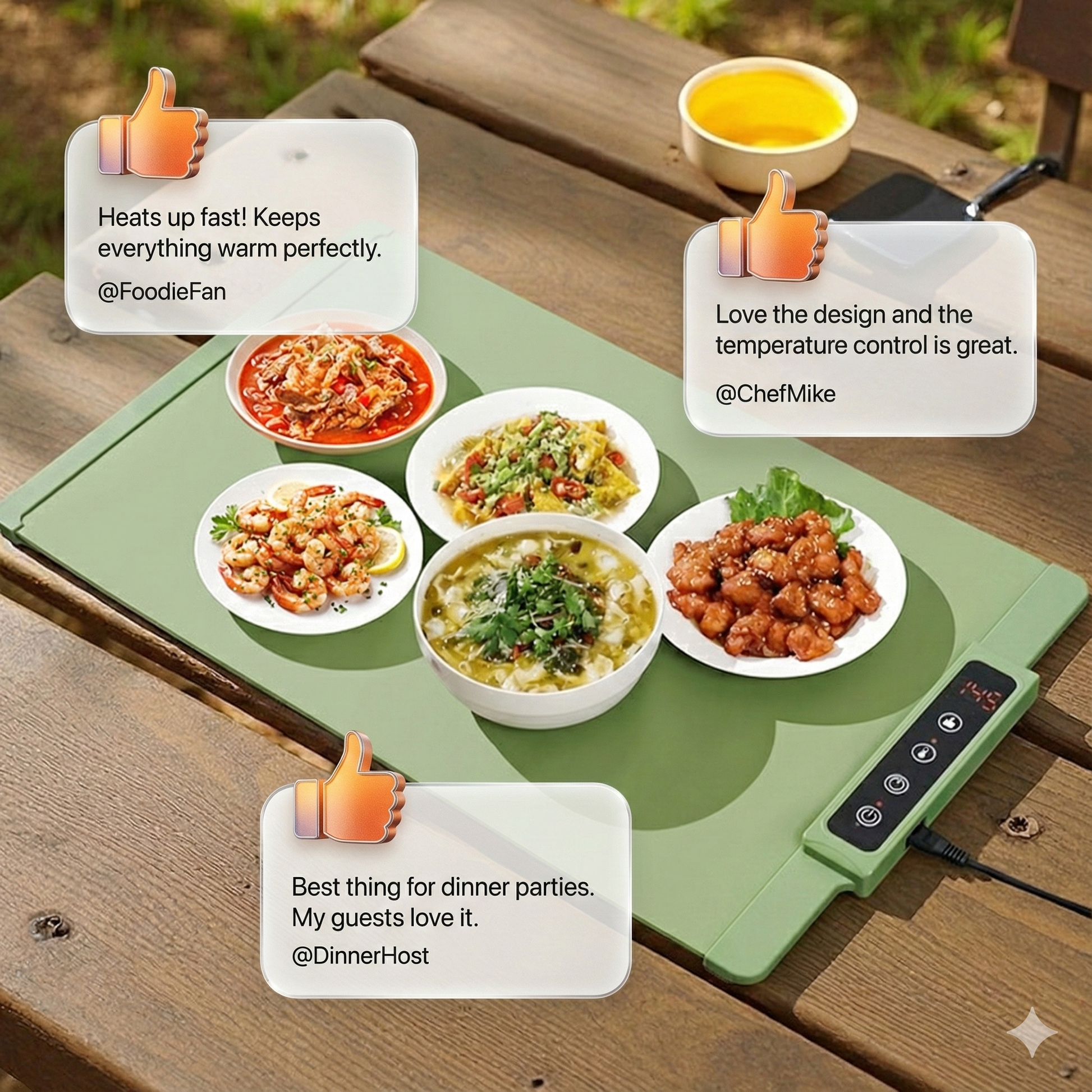 RAPID & UNIFORM HEATING - Featuring advanced heating film technology, this mat heats up in just 10 seconds. Enjoy consistently warm meals without the long wait, ensuring every dish is served at the perfect temperature for your family.